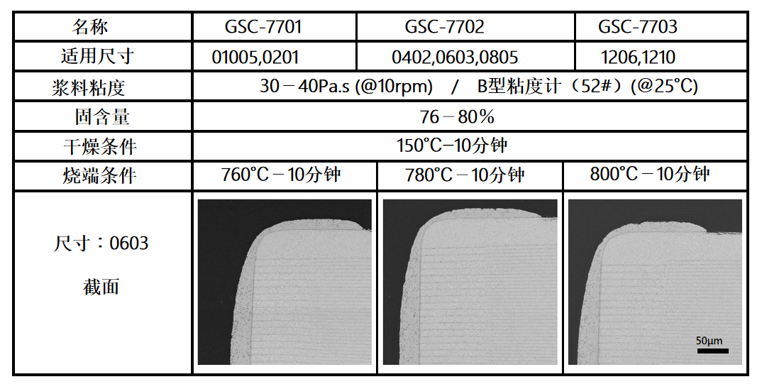 不同廠家漿料所形成的端電極結構對比,百銳新的致密性、可靠性、R角的包覆性好